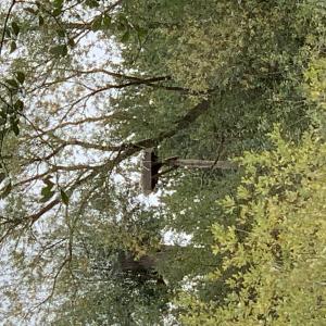 Juvenile osprey resident in the park for 7 weeks during migration in Autumn 2024, platform erected in March 2025. Platform atop a 10m pole on the outer side of the 'Wetlands' section of the park, in trees along edge of open field, close access to the large ponds of the park (especially Dickerson's Pit).
