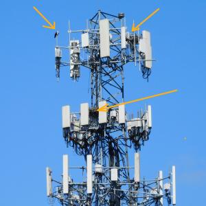 | Note: | There is a new nest on the top tier; as I pulled up but before I could get my camera on it, an osprey pair mated on this nest. The male then perched on a post on the opposite side of the tower while the female remained in the net. The old nest, begun by an eagle pair and used by the ospreys to raise chicks last season, remains on the second tier facing southwest. The new nest is on the southeastern side of the tower. | ||||||