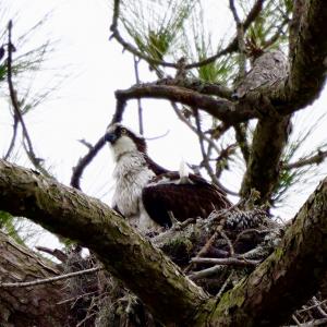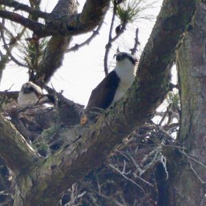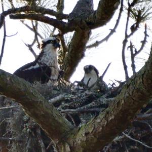 | Note: | Joanne V reports: when I first arrived, I saw the back side of an eagle sitting on the nesting tree branch (probably the same one seen previously). I walked around the tree to get a frontal look and then saw an osprey fly into the nest. It happened very quickly. I went back around the tree and saw both Ricky & Lucy in the nest. It’s unclear if Lucy was already there and just Ricky flew in or if she flew in the nest as well and I missed it. After about 15 minutes observing, Ricky flew out, but Lucy remained. Unlikely incubation has started, but will check back in a few days. | ||||||