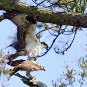 | Note: | Joanne V reports: when I arrived, Lucy and Ricky were on different branches in the nesting tree, one above the other. After about 15 minutes, Ricky flew out of the tree and then returned, flew on top of Lucy and the 2 began mating. That lasted about 5 minutes and then Lucy flew off, but Rick remained. | ||||||