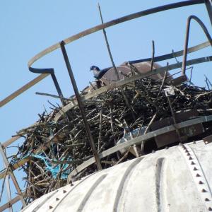 | Note: | The female was electrocuted on the nest here in 2024. The osprey male has not returned with a new mate and the nest was deteriorated. There was a black bird sitting up there on the structure. | ||||||