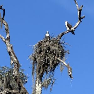While it is said this nest has produced young since 2002, the nest was not added to the project until 2023. This pair has been named Davis and Lovey...after the golf course. Enter the Eagle's Point development in Bluffton and proceed toward the golf club. The nest is on your left after the Eagle's Point Circle. Note: This is NOT a gated community. If you turn left onto Stratford Drive in the development, you can park and on your left is the 10th hole. The nest is straight down the fairway in the tree.